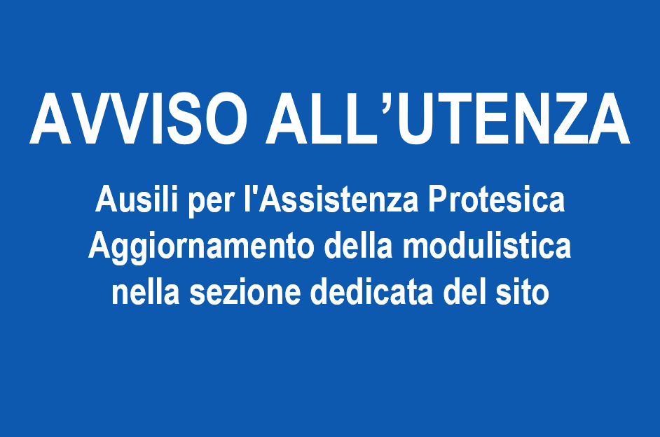 Si comunica all’utenza l’aggiornamento della modulistica inerente gli ausili per l’Assistenza Protesica nella sezione dedicata al link https://www.aslroma3.it/servizi-dalla-a-alla-z/a/ausili-e-protesi-assistenza-protesica-e-disabili-adulti/
