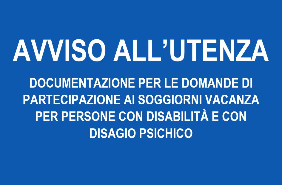 In relazione all’organizzazione e realizzazione dei servizi per la vacanza per l’anno 2026, in favore delle persone con disabilità e con disagio psichico di cui all’art. 29, della legge regionale 11/2016 e della Deliberazione Regione Lazio n. 1121 del 19 dicembre 2024. Di seguito si allegano i documenti contenenti modulistica e informazioni da scaricare per la presentazione delle richieste di partecipazione entro il 31/03/2026