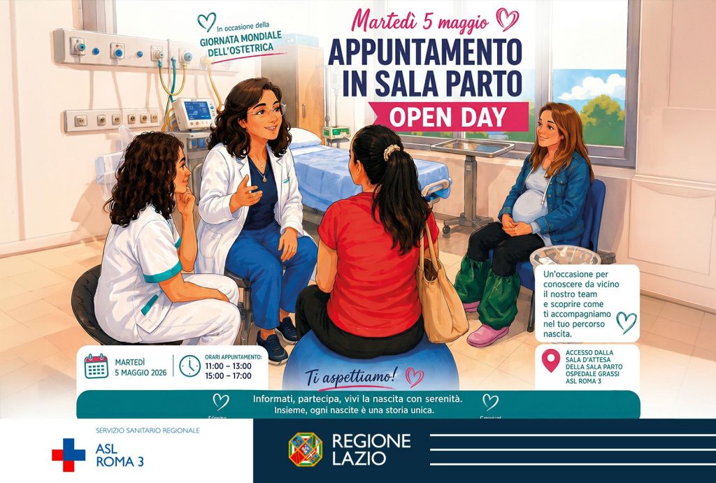 Martedì 5 maggio, in occasione della Giornata Internazionale dell’Ostetrica, si terrà un open day presso la Sala Parto dell’ospedale Grassi di Ostia. Dalle 11 alle 13 e dalle 15 alle 17 il personale sanitario sarà a disposizione in uno spazio tutto dedicato alla nascita. Un’occasione speciale per conoscere le ostetriche, visitare gli spazi, fare domande e scoprire come mamme e famiglie vengono accompagnate nel percorso della nascita.