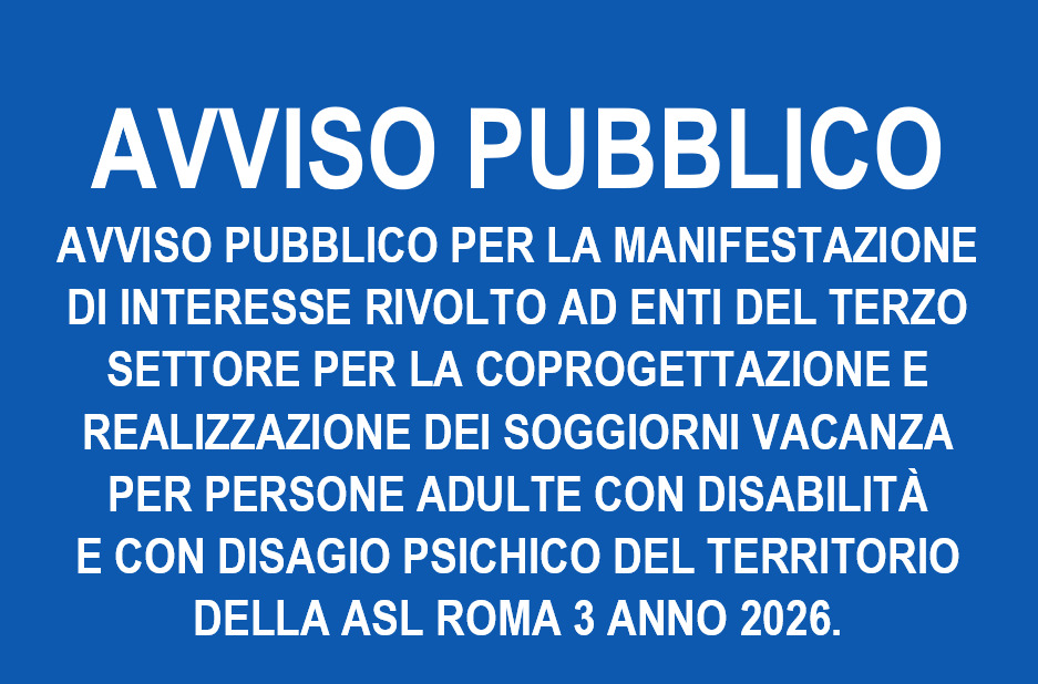 Manifestazione di interesse per la coprogettazione e realizzazione dei soggiorni vacanza 2026 per adulti con disabilità e disagio psichico della ASL Roma 3