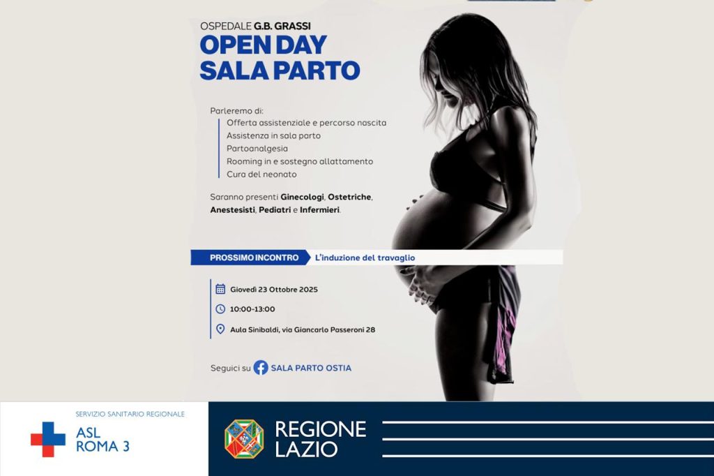 Giovedì 23 ottobre 2025 nuovo appuntamento con l’Open Day Sala Parto. All’interno dell’aula Sinibaldi dell’ospedale Grassi di Ostia, in via Giancarlo Passeroni 28, dalle 10 alle 13 un team di ginecologi, ostetriche, pediatri e infermieri della ASL Roma 3 sarà a disposizione per parlare dell’offerta assistenziale e percorso di nascita, dell’assistenza in sala parto, della cura del neonato e altro.